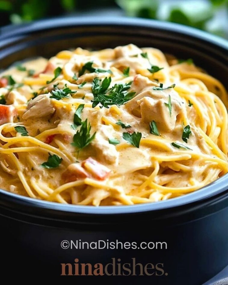 Creamy Crockpot Chicken Spaghetti