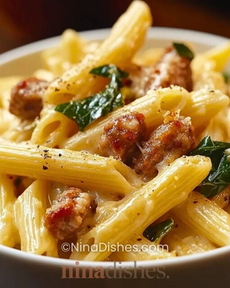The creamy sauce clings perfectly to the pasta, while the sausage adds a hearty, slightly spicy contrast. With the subtle sweetness of sun-dried tomatoes and the freshness of spinach, this dish is a restaurant-quality experience made right in your kitchen. It’s a satisfying, one-pan meal that’s quick enough for busy weeknights yet elegant enough for special occasions.