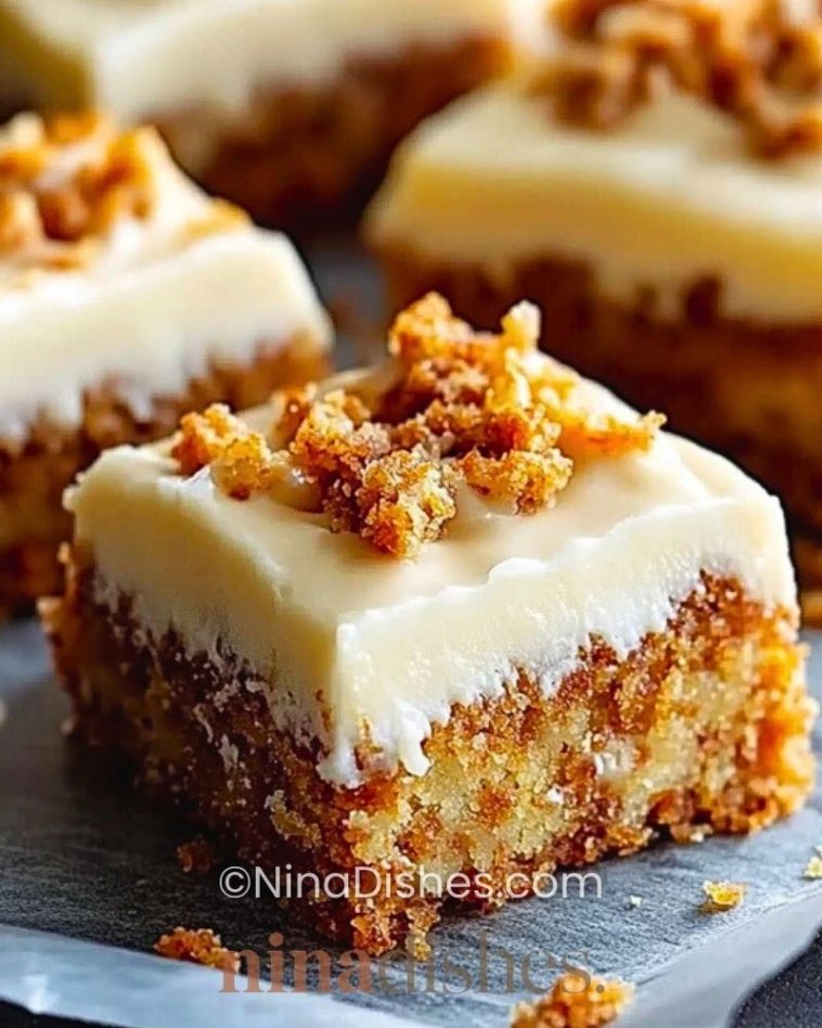 Chill the frosted bars for 20–30 minutes for easier slicing. Cut into squares and serve chilled or at room temperature—either way, they’re absolutely divine.