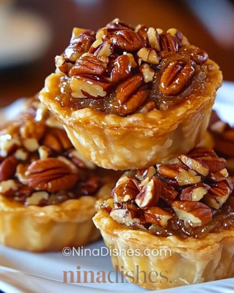- Fill the crusts: Spoon about 1 tablespoon of the pecan filling into each pie crust cup. Be careful not to overfill. Place a few whole pecans on top for extra crunch.